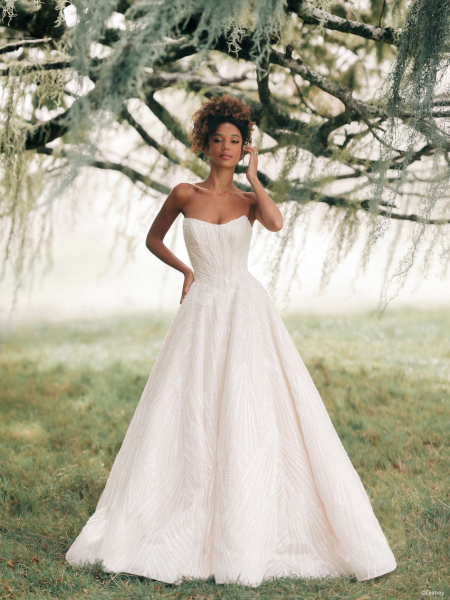 Growing up, you imagined a princess wedding gown and dreamed of the day your special someone would step into your story. Now that day has arrived, and you’re getting ready to begin your own real-life happily ever after. Start the next chapter of your life in a dress beyond your imagination – one with magic in every thread. Allure Bridals offers a mesmerizing collection of enchanting wedding dresses inspired by the timeless magic of your favorite fairy tales. Each gown features gorgeous, meticulous designs that capture the essence of beloved characters and stories, bringing a touch of whimsy and romance to every bride’s special day. From the elegance of Cinderella to the daring spirit of Jasmine, these Disney fairy tale wedding dresses evoke the essence of cherished Disney heroines, allowing brides to embody their favorite princess on their wedding day.
